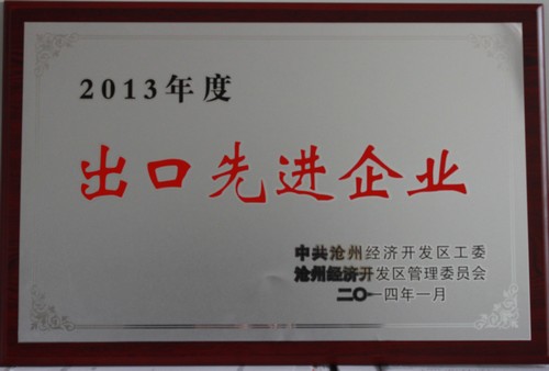 2014年榮獲“2013年度出口先進(jìn)企業(yè)” 榮譽(yù)稱號(hào)