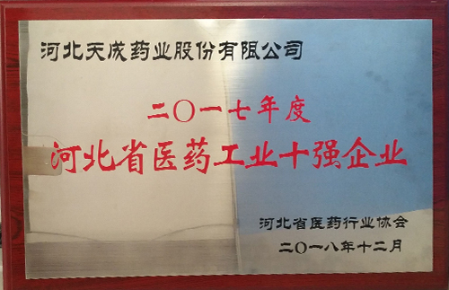 公司獲得2017年河北省醫藥工業十強企業